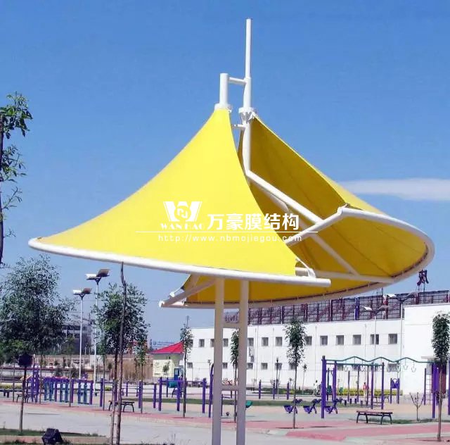 5、自潔性。膜結構建筑中采用具有防護涂層的膜材料,因此具有良好的自潔效果,可利用雨水的自然沖刷進行建筑物的外觀清潔,同時也確保了建筑的使用壽命。另外,膜結構還具有便于運輸、易更新及不易積雪等優點。