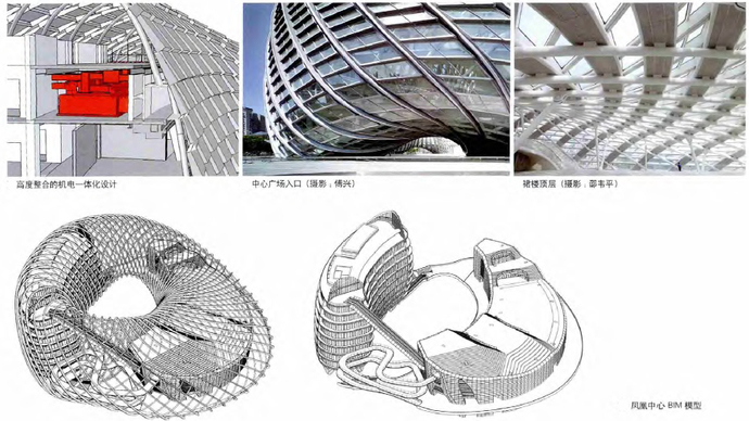 設計師們在設計鳳凰中心時開創性地大量運用了三維數字化技術,是國內首次運用三維數字技術進行全面的、大規模張拉膜結構建筑實踐的案例。該項目利用張拉膜結構建筑信息模型以及參數化編程控制技術生成了無法逐一繪制的技術信息,完成了常規技術無法實現的設計成果。