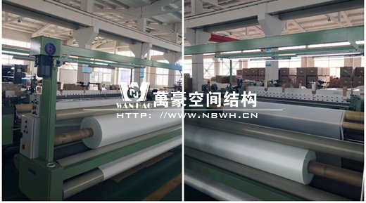 膜材加工依據結構方式的不同,可以將其分為三類:骨架式膜材加工、充氣式膜材加工、張拉式膜材加工。目前建筑膜材根據不同性能可分為四大類: PVC,二氧化鈦膜,PTFE,ETFE。