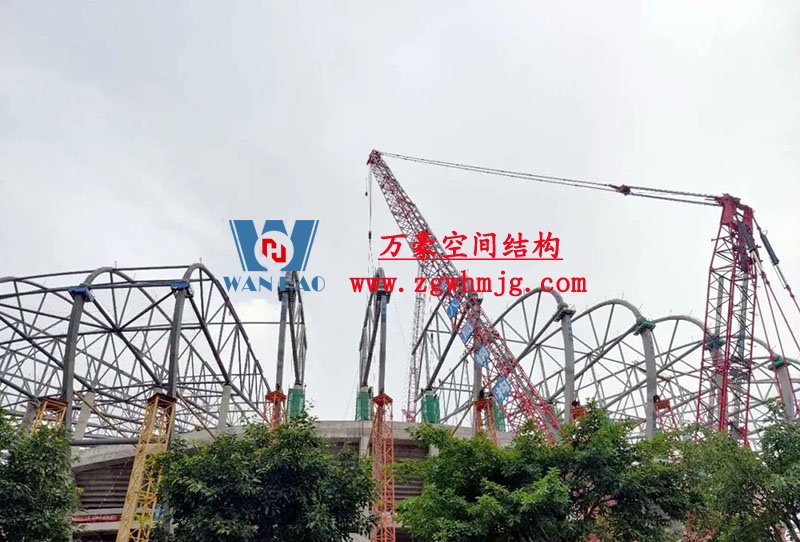 8月18日,隨著最后一榀環向桁架吊裝完成,重達14000噸的罩棚鋼結構順利封頂,重慶龍興足球場項目鋼結構全部完成,創2023年亞洲杯新建場館建設速度第一。這是重慶市打造的首座大型專業足球場,也是國內在建的規模最大專業足球場之一,其設計取意為“火鳳凰”。