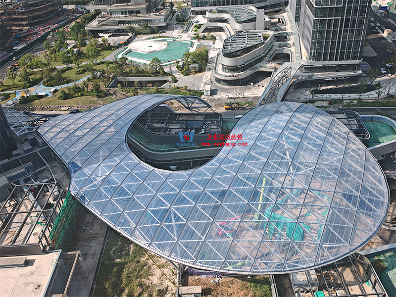 紹興華發(fā)金融活力城ETFE膜結構商業(yè)天幕工程位于浙江省紹興市,該項目ETFE膜結構展開面積約4100平方米。