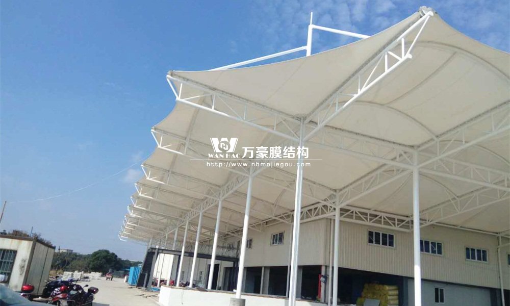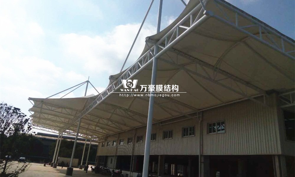 嘉善索菲亞家居膜結構工程就位于嘉善縣的嘉善經濟開發區隆全路上。整個項目總用鋼量達到了約120噸,膜布投影面積3000㎡。
