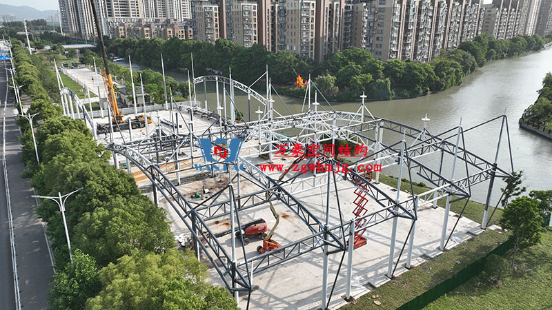 | 項目概述 - | 溫州惠民路西側綠地球場鋼膜結構工程,該項目總用鋼量約310噸,PTFE膜結構展開面積約7760平米。... |