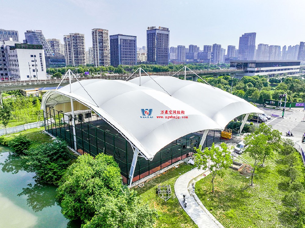 | 項目概述 - | 四川廣安共享體育場網球館膜結構位于廣安區官盛新區,是廣安共享體育場的一部分,PTFE膜結構展開面積5500平方米... |