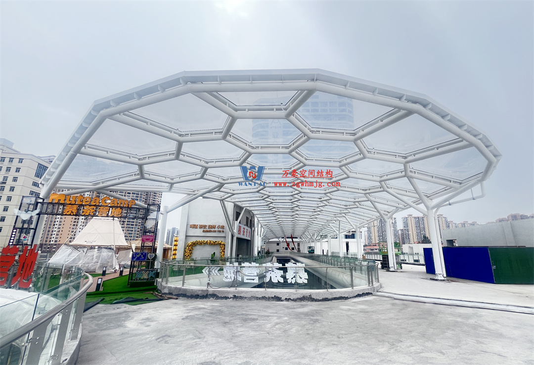 我們步入一座購物中心,目光所及早已不再局限于商品陳列與促銷活動,往往更容易被精心設計的空間場景所吸引。從自然生態到IP展覽,從主題街區到光影藝術,這些特色場景都在重新定義人與空間的連接方式,也賦予了膜結構商業天幕更多的探索價值。
