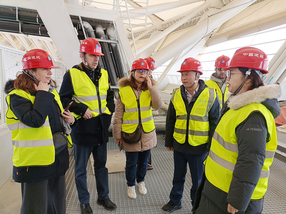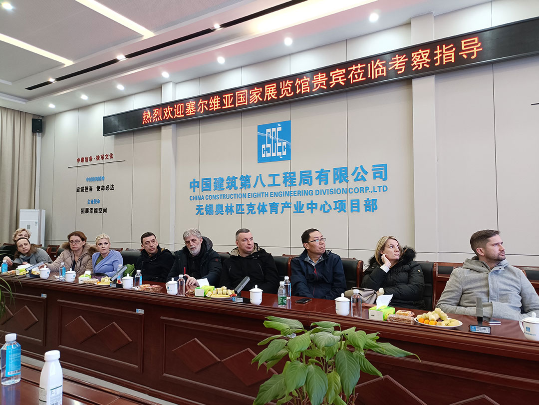 匯報環節中,萬豪集團重點介紹了在大跨度空間結構、高性能膜材料應用、綠色低碳建造等領域的核心技術優勢,系統展示了國內外多個地標性項目的建設成果——從復雜鋼結構的精密加工到ETFE膜材的創新應用,從項目前期深化設計到后期運維服務的全鏈條把控能力,讓代表團對萬豪集團的技術水準與服務理念有了深刻認知。雙方圍繞塞爾維亞國家展覽館項目的技術需求、施工標準及合作模式展開深入探討,務實的交流為后續合作奠定堅實基礎。