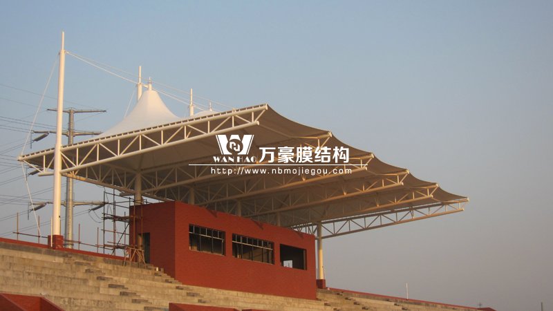 常州工學院新校區看臺膜結構屋面采購及安裝項目已經順利完工,本工程位于常州工學院新校區內,柱頂最高點21.034米,桁架高14.284米,建筑面積約663平方米。