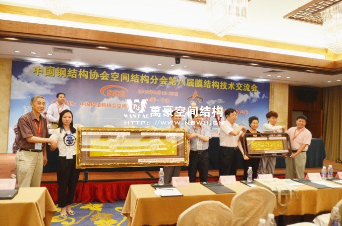 四、會議最后,中國鋼結構協(xié)會空間結構分會授匾寧波萬豪空間結構工程有限公司,表示對萬豪的肯定與期望!