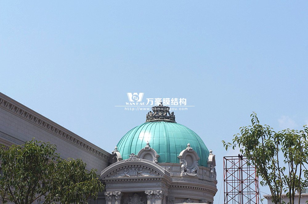 豪華的像是一個首飾盒,裝滿了各種珠寶的巴黎歌劇院目前重塑于橫店影視城圓明新園皇家園林內(nèi),其中兩側(cè)的銅綠穹頂宛如畫龍點(diǎn)睛般凸顯其精致、雄偉。兩個穹頂結(jié)構(gòu)相同并對稱,穹頂主結(jié)構(gòu)采用相同弧形彎管拼裝而成,結(jié)構(gòu)表面采用480塊大小各異的鋁單板組裝而成。
