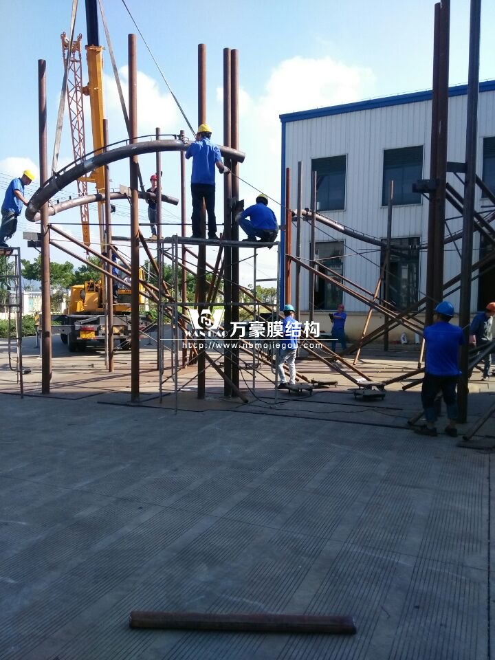 我司承建的斯里蘭卡膜結構項目,經過和中方代表進行完整的交流后,斯里蘭卡方面僅能提供圖片,為此我司根據要求制作了完整的方案進行匯報,經過多次的溝通交流,最終確定了圖紙、施工方案及生產方案。