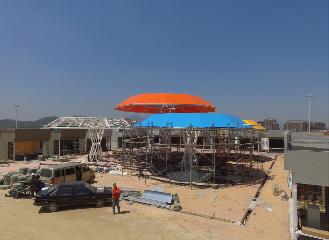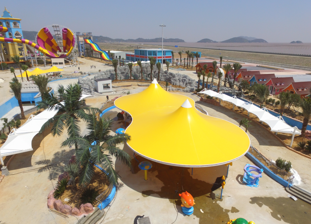 現場測量、深化設計、制作及安裝由寧波萬豪空間結構工程有限公司全權負責;目前施工已接近尾聲,各區域產品已陸續安裝完成,為海闊天涳水世界增添了獨有的色彩。
