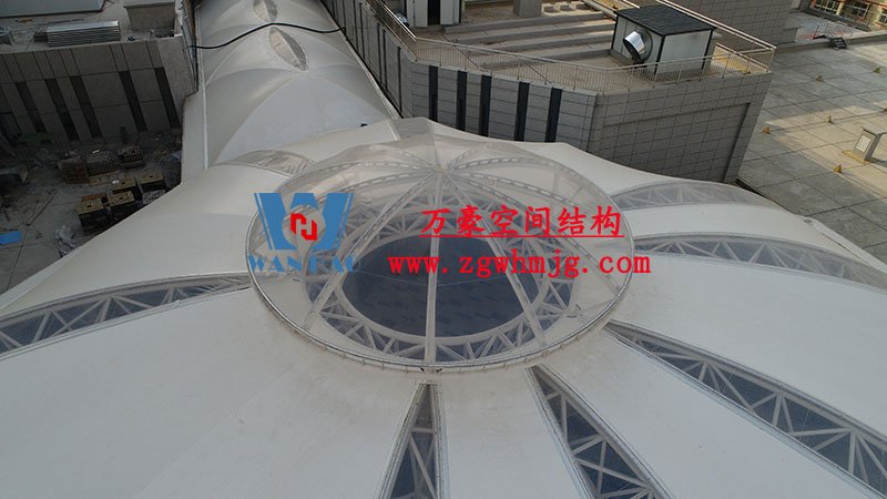 其中,新泰卓越·財富廣場膜結構屋頂項目由寧波萬豪空間結構工程有限公司承建。