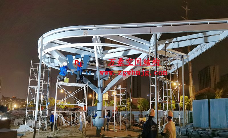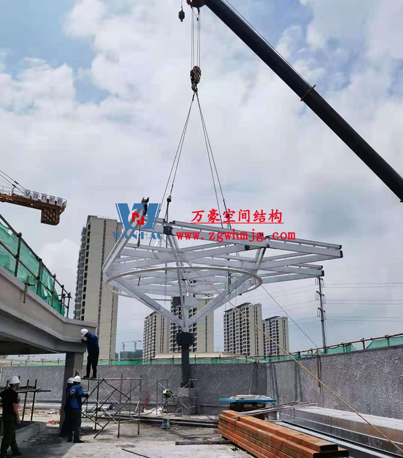 臺州大板橋ETFE氣枕天幕項目鋼結構開始吊裝