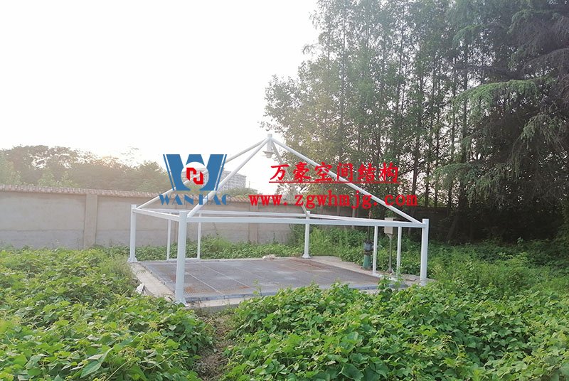 項目采用鋼骨架反吊膜結構,工程內容由混泥土基礎工程、鋼結構工程、反吊膜屋面工程三部分組成,膜結構展開面積12000平米。