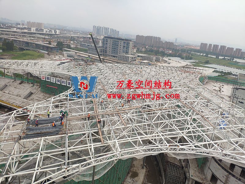 杭州亞運會棒(壘)球體育文化中心膜結構項目鋼結構安裝中