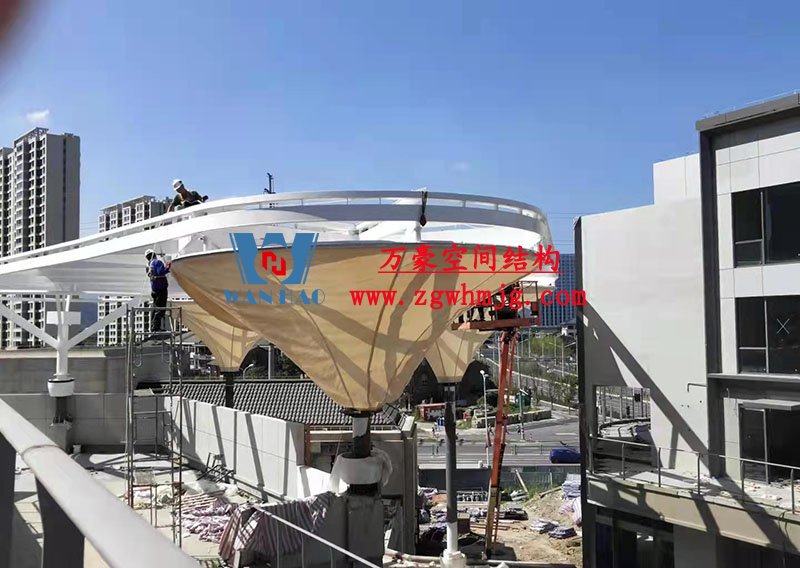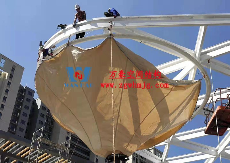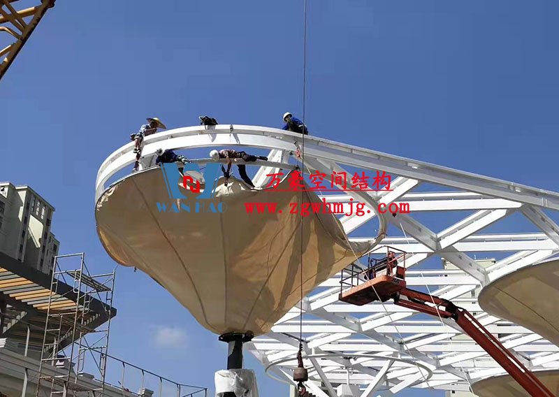 臺州大板橋ETFE氣枕天幕項目膜結構安裝中