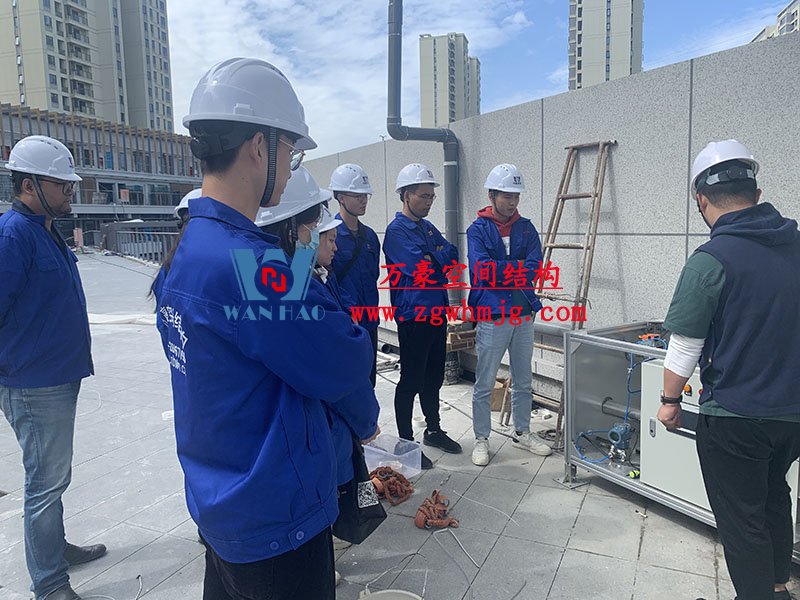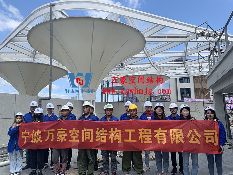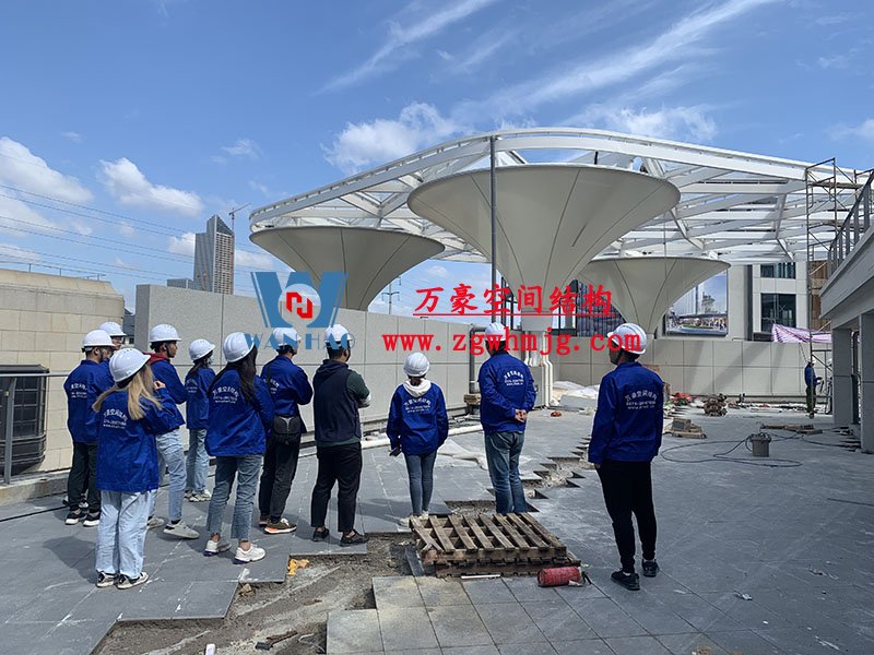 萬豪空間結構員工到臺州大板橋ETFE氣枕天幕項目、溫州鐵定溜溜樂園ETFE天幕及PTFE景觀傘膜結構工項目學習交流