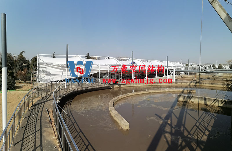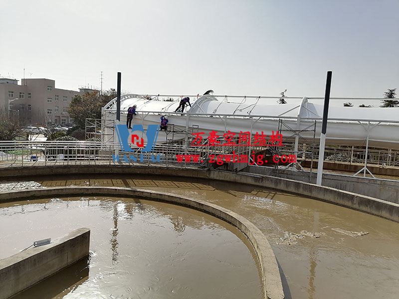 亳州市污水處理廠一期氧化溝密封升級改造工程厭氧池立面膜已張拉