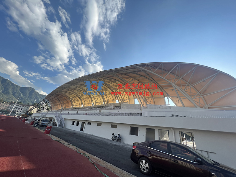 龍泉市體育場鋼膜結構工程位于浙江省麗水市龍泉市大沙曾家張家區塊,該項目用鋼量200噸,膜結構展開面積3000平米。