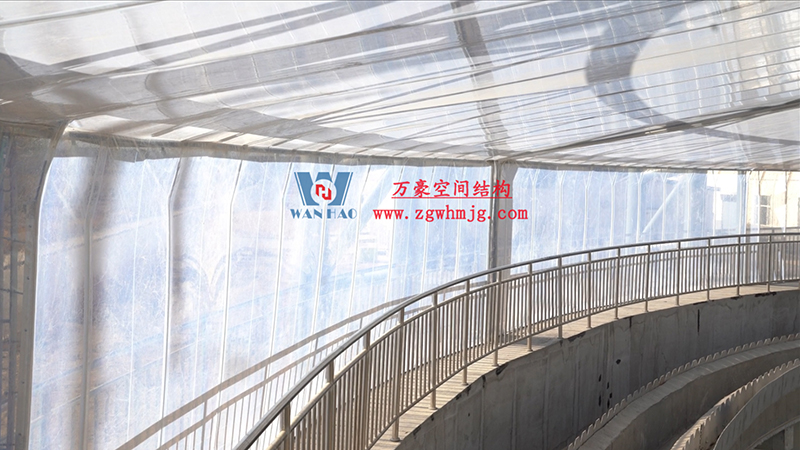 格爾木污水處理池保溫加蓋工程是由直徑60米和直徑30米的不等池子組合完成,采用軟玻璃ETFE膜材料作為基材,具有高透光率、自重輕盈、柔軟可張拉、抗震效果好等特點(diǎn),完美達(dá)到污水處理池對(duì)陽(yáng)光和紫外線(xiàn)照射的要求,屬于國(guó)內(nèi)首例ETFE在工業(yè)污水保溫加蓋中應(yīng)用工程,具有廣闊的應(yīng)用前景,值得推廣宣傳,助力中鋼協(xié),為行業(yè)發(fā)展努力奮斗。