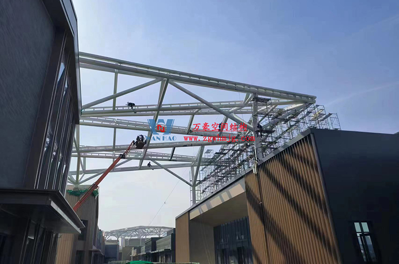 文一塘溪津門(mén)天幕鋼結(jié)構(gòu)及ETFE氣枕膜工程由寧波萬(wàn)豪空間結(jié)構(gòu)工程有限公司承建,該項(xiàng)目用鋼量900噸,膜結(jié)構(gòu)展開(kāi)面積7000平米。今年以來(lái),萬(wàn)豪施工團(tuán)隊(duì)緊抓時(shí)間節(jié)點(diǎn),工程進(jìn)度推進(jìn)迅速。