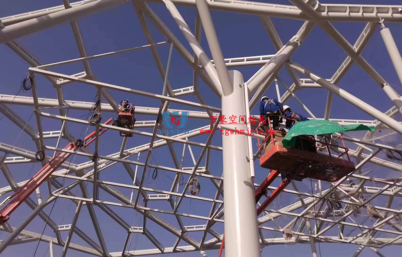 最近項(xiàng)目不斷傳回最新施工進(jìn)展,目前鋼構(gòu)主體已經(jīng)完成,油漆的涂刷、二次鋼構(gòu)以及排水管道的安裝也已接近尾聲,現(xiàn)在進(jìn)行最后的收尾工作。樣品膜的試裝也已完結(jié),等待后期整體鋼構(gòu)以及排水管安裝完畢,開(kāi)始進(jìn)行膜體的安裝。期待工程的整體完工,讓我們能夠盡早一飽眼福。